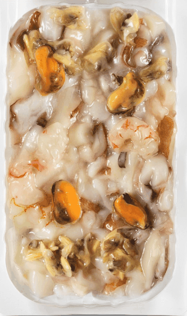 Enrich any rice or pasta dish with the Seafood Mix for Rice and Spaghetti pack. This premium mix of squid rings and tentacles, cooked clam meat, cooked mussel meat, and peeled shrimp is ideal for a quick, healthy, and tasty pasta or rice dish. No shells to discard, squid to clean, or shrimp to peel. The mix is vacuum packed to seal in fresh taste.